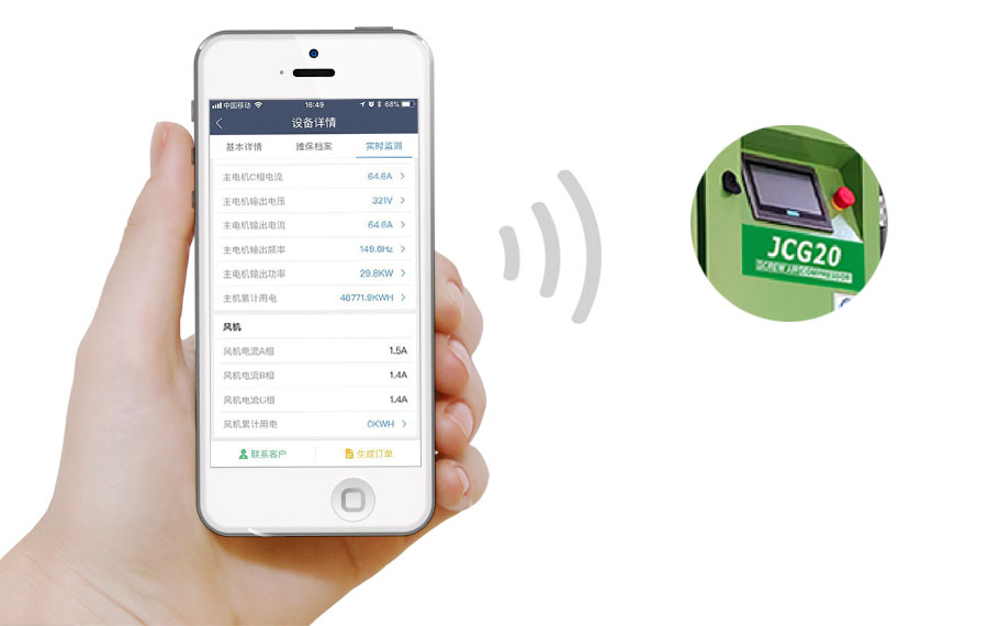 通過物聯網技術對空壓機設備進行全生命周期管理,遠程檢測,遠程管理,手機預警,數據采集等。